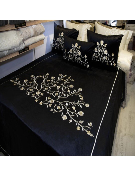 Kadife Maraş İşi Yatak Örtüsü Takımı